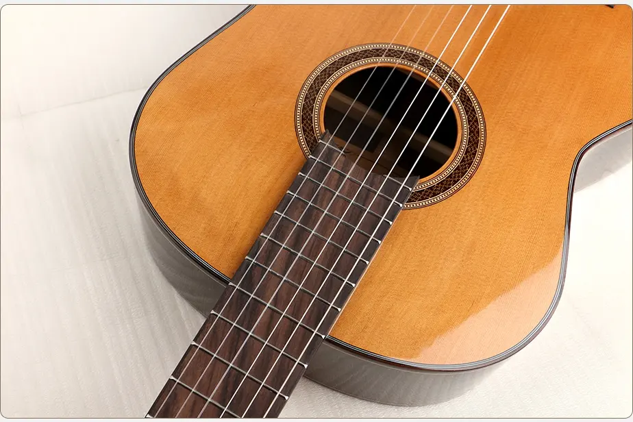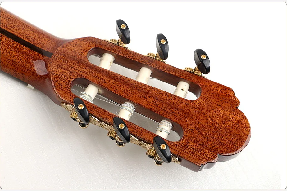 K-CG850SS-39 is high end handmade all solid wood model of Kaysen classical guitar. It's 39 Inch. The top is made of solid cedar AA grade, back and side are made of solid rosewood. It's equipped with premium quality retro three in row head machine, high tuning accuracy. The neck is made of quality mahogany wood, which is not easy to deform. And it's with rosewood fingerboard. The round-tipped frets on the fingerboard provide a foundation for you to play with confidence. The high gloss finish makes the whole guitar looks more perfect. The wood are with high quality and the craftmanship is professional, this model is definately your best choice on your music road. We can match guitar accessories in this guitar as well, such as guitar bag and case, guitar strings, guitar straps etc. Brand Kaysen Size 39 Inch Top Solid Cedar AA Back And Side…