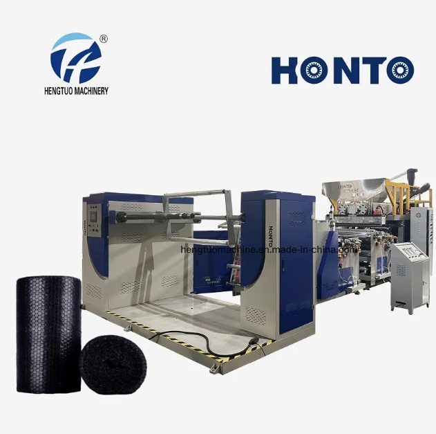Product Description HT-1000/1200/1500/1800/2000... Polythylene Air Bubble Film Making Machine for bubble Film Bubble sheet Single extruder / double extruder/... Usage: PE Air bubble film making machine adopts once-through shaping technique, thus has high efficiency and excellent product quality. This machine set has such features as scientific and reasonable structure design, smooth and reliable running and convenient operation and maintenance. Polyethylene air-cushion film (also called polyethylene bubble film), which is divided into two kind: ordinary polyethylene air-cushion film and composite polyethylene air-cushion film, is a kind of packing material which has been widely used at present. It not only has good cushioning effect, shock resistance and heat-sealing performance, but also has such advantages as good corrosion resistance and transparency , etc. So it has been widely used for packing, household wares, post parcel, bicycle , polyurethane furniture, etc…