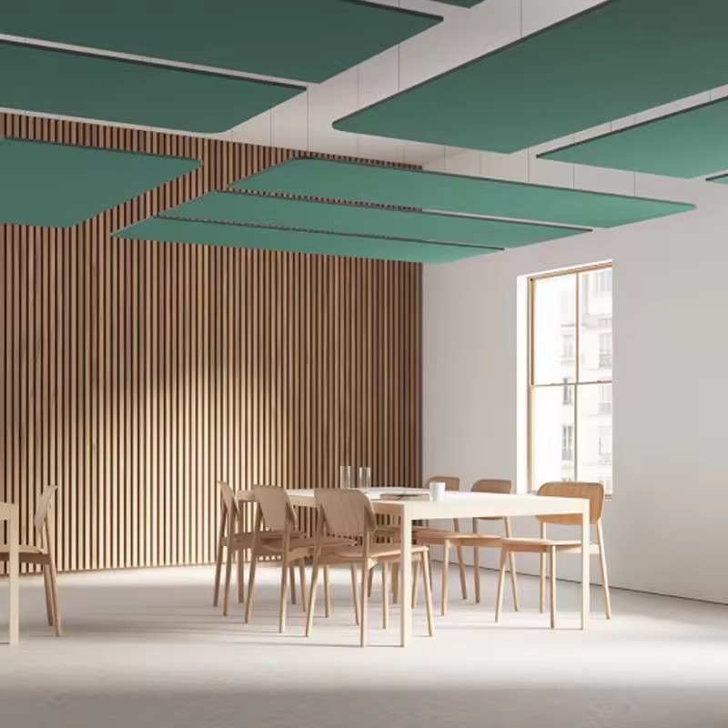 Interior Polyester Fiber Hanging Ceiling Sound Panels are an innovative solution for enhancing the acoustic environment in any interior space. Designed with high-quality polyester fiber, these panels offer superior sound absorption properties, making them ideal for a wide range of applications such as offices, schools, hospitals, and commercial buildings. The interior ceiling panel is specifically engineered to reduce echo and noise pollution, creating a more comfortable and functional atmosphere. With their sleek design and versatile installation options, these ceiling panels blend seamlessly into modern interiors while delivering exceptional acoustic performance. The key features of the acoustic baffles include excellent sound absorption, lightweight construction, ease of installation, and durability. Each hanging ceiling sound panel is crafted to ensure consistent quality and long-lasting performance, making it a reliable choice for both residential and commercial pro…