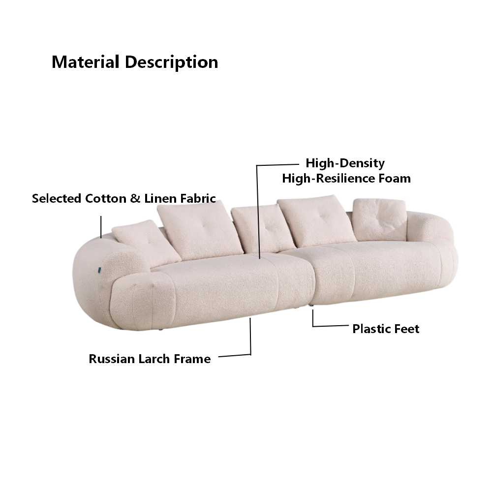 SereneHaven CloudWrap Curved Linen/Leather Sofa | Stain Resistant Premium Living Room Furniture Crafted by SereneHaven Furniture Team | 15+ Years Expertise in Premium Living Room Furniture for Modern Homes There’s something special about this curved sofa – its soft, wrapped silhouette turns lazy afternoons and movie nights into little moments of comfort. Go for the breathable Stain Resistant Linen Fabric Sofa for Family with Pets if you’ve got a busy household, or opt for top-grain leather to give your space that polished, upscale feel. Packed with 60D high-resilience foam, it gives a gentle sink when you sit, never going flat on you, and it pairs beautifully with your Upholstered Elegant Armchairs for Living Room Decor no matter your existing layout. Technical Specifications Frame: Imported Russian larch Heavy Duty Solid Wood Frame for Long Term Furniture Use, treated to resist moisture and warping over time (solid, creak-free foundation, no hollow rattling when you shift positions…